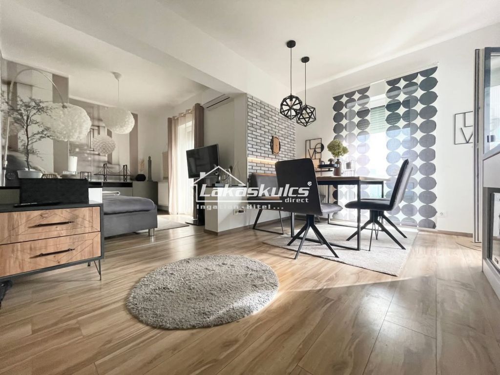 Prémium lakás a Lővérek szomszédságában – kert használattal, két erkéllyel és teremgarázsban gépkocsibeállóval l! Sopron egyik legkeresettebb városrészében, a Lővérek szomszédságában, kínálunk eladásra egy újszerű, 53 m²-es amerikai konyhás nappalis, 1 hálószobás prémium lakást, amely minden részletében a kényelmet és a minőséget szolgálja. Két napfényes erkély, egy hangulatos közös kert olvasópaddal, valamint saját fedett gépkocsibeálló és tároló is tartozik az ingatlanhoz – mindez egy árban! Kinek ajánljuk? * Első otthonukat kereső pároknak, akik nyugodt, zöld környezetben szeretnének élni * Befektetőknek, akik értékálló, azonnal kiadható ingatlant keresnek prémium lokációban * Kényelmet és minőséget előnyben részesítőknek, akik nem akarnak felújítással bajlódni Főbb jellemzők: * Modern, Vaillant házközponti fűtés, radiátoros rendszerrel * Két WiFi-s hűtő-fűtő klíma külön kültéri egységgel * Redőnyök és szúnyoghálók minden nyílászárón * Egyedi, fényes konyhabútor új, energiatakarékos gépekkel * Igényes fürdőszoba minőségi anyagokkal és beépített bútorokkal * Beépített gardrób és előszobabútor – minden elfér * Optikai internet, * Erkélyek tárolóval, saját kertkapcsolattal A lakáshoz tartozik: * Teremgarázsban 16 nm-es gépkocsibeálló, saját villanyórával * 4 m²-es zárható tároló ✨ Ez a lakás nem csupán egy otthon, hanem életminőség Ne maradjon le róla – az ilyen adottságú ingatlanok ritkán kerülnek piacra! Ár: 77 M Ft. Érdeklődni: 06 20 9397745