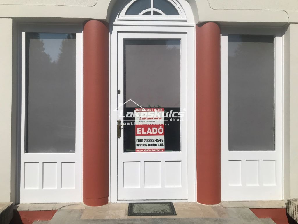 Keszthelyen a belvárosban, a sétáló utca közelében, 44 m2-es, földszinti üzlethelyiség eladó. Az eladásra kínált ingatlan tégla építésű társasházi épületben található külön helyrajzi számon. Jelenlegi megnevezése üzlet. Lokációja nagyon jó. A társasház előtt gépkocsi parkoló került kialakításra. Az üzlethelyiség kelet-nyugati fekvésű, két bejárattal rendelkezik, kertkapcsolatos. Az ingatlan akadálymentesített, mozgásukban korlátozottak is tudják használni. Helyiségek: Nappali, közlekedő, konyhasarok, szoba, WC-mosdó, közös tároló a pincében (tulajdoni hányadnak megfelelően). Közművek: villany, víz, csatorna, gáz, kábel TV, telefonvonal Közművek külön órával mértek. Fűtés: gázzal történik. Az ingatlan kis költséggel akadálymentes lakássá, nyaralóvá is alakítható. Erre vonatkozóan készült terv. A tulajdonos tud segíteni az átalakításban, az ingatlan átminősítésében. Ár: 89.700,- Euró, azaz 35,- millió Ft