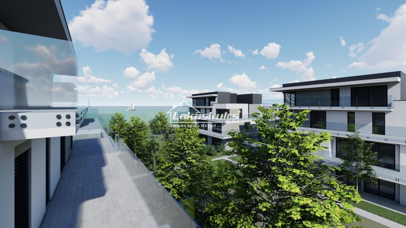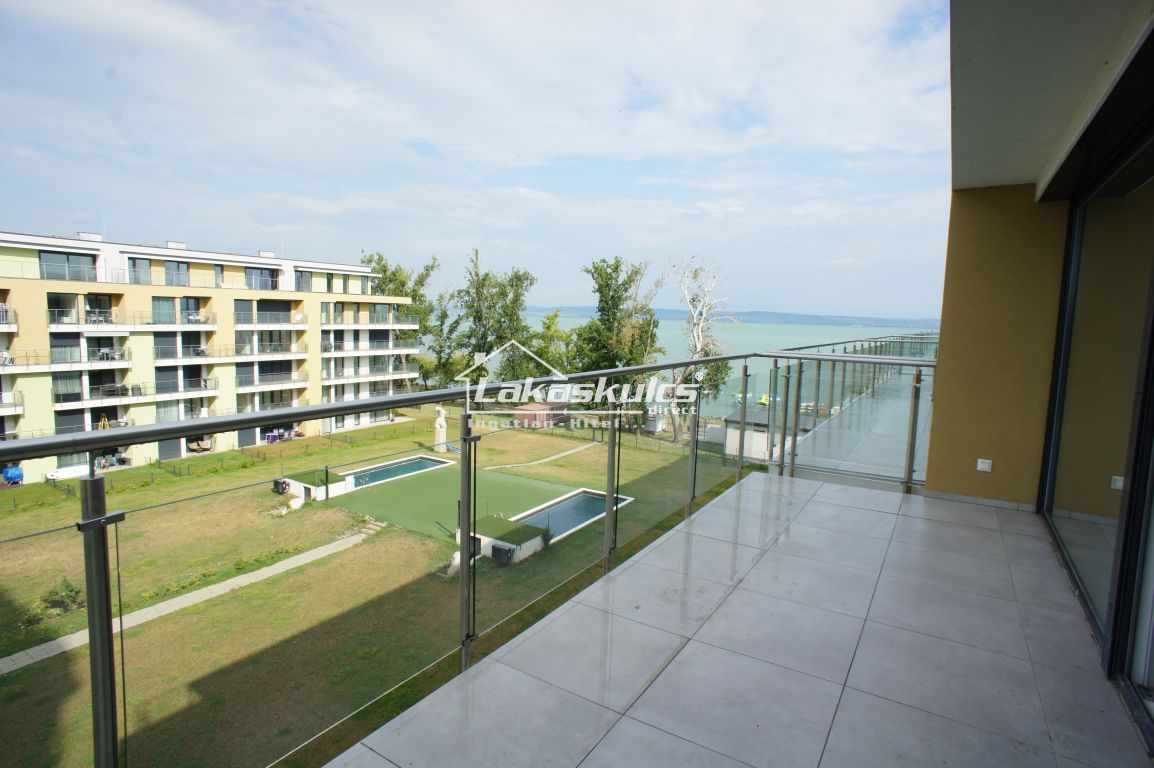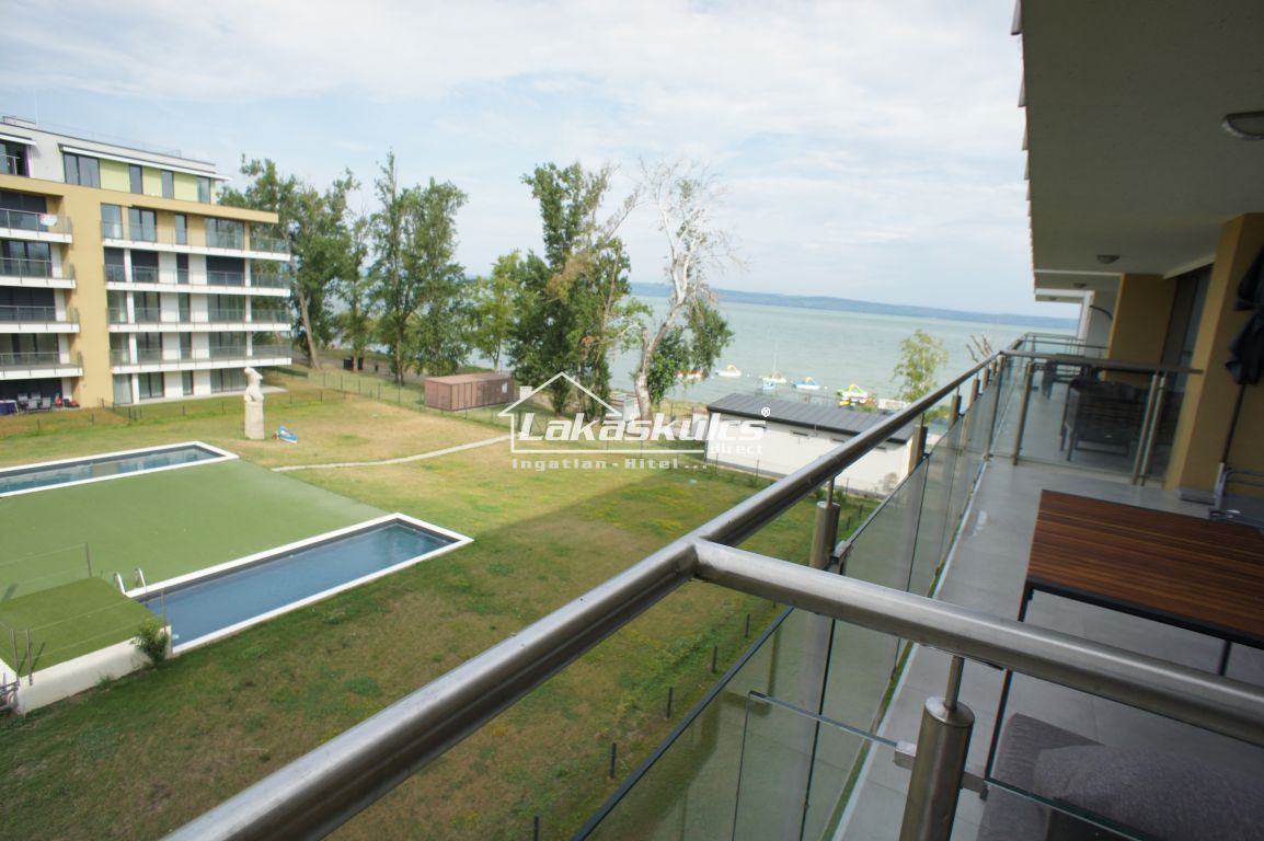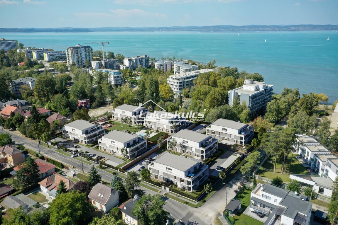 A LAKÁS FRONTI, KÖZVETLEN PANORÁMÁS, BALATONRA TÁJOLT, VÍZPARTI LAKÁS, gondos és alapos tervezői munka eredményeként került megvalósításra. Fontos szempont volt a praktikum, a használhatóság, a fenntarthatóság, és még sok más fontos paraméter, melyek a korábbi építkezések tapasztalatai alapján, a vevők érdekében súlyozottan lettek figyelembe véve. A lakás otthont kínál az álomszép Balaton mellett, ahol nem csak szezonálisan, de egész évben is élvezetes kényelmet, kikapcsolódást és a természet közelségét nyújtja a tulajdonosának. Ritka szép, közvetlen vízparti elhelyezkedés mellett az igényes tervezés, a minőségi kivitelezés az ingatlan nagyszerű kihasználhatóságát, örök balatoni panorámát és elvehetetlen értéket biztosít. Az ötemeletes társasház tetején néhány kizárólagosan használható, panorámás grill- és napozóterasz került kialakításra úgy, hogy a lehető legnagyobb privátszférát tudja biztosítani a tulajdonosának és alkalmi vendégeinek. Itt teraszonként egyedi vízvétel és áramvétel biztosítása mellett minden lehetőség adott egy kellemes, panorámás, naplementés party élvezetéhez. A beépített anyagok kiválasztásánál a magas minőség elengedhetetlen szempont. A lakásokat elválasztó, hangszigetelt falak, az épület 15 cm vastag külső hőszigetelési rendszere, az emeletek elválasztó födémeinek 4 cm vastag hő/hangszigetelő táblái akadályozzák meg a minden irányú hangterjedést. A lakások nappalijából és szobáiból a zavartalan panoráma élvezete a teraszokon át a rozsdamentes, szálcsiszolt oszlopokkal, kapaszkodókkal és a ragasztott biztonsági üvegtáblákkal biztosított. Az emeleti szintek kényelmes megközelítését két (nyolc- és tizenháromszemélyes) lift teszi lehetővé. A nyílászárók üvegezése háromrétegű, a külső oldalakon antracit színű kerettel, a közös terek, folyosók, a teraszok I.osztályú szürke, fagyálló kőporcelán lapokkal burkolt. A lakások fűtését és hűtését központi LG Multi V-5 hőszivattyús rendszer látja el a 2024-as év energia szabványainak megfelelően, amely fokozottan energiahatékony üzemeltetést tesz lehetővé. A szobákban, nappalikban felszerelt beltéri egységek léghűtést és légfűtést biztosítanak, így ennek köszönhetően rendkívül gyorsan hűtik le vagy fűtik fel a helyiségeket. A társasház lakói kizárólagos kerthasználatot kapnak erre a területre, ahol a több generációs családok kikapcsolódása érdekében, a beruházás keretein belül gyermekjátszótér és kültéri medence biztosítja ezek védett használatát. Az ingatlan előtt húzódó több mint 3 km hosszú szabadstrand, gondozott zöldterületekkel, parti sétányokkal, vízi és parti sportolási lehetőséget kínáló kölcsönző helyekkel, valamint igényesen kialakított étteremmel és büfékkel szolgálja ki az itt nyaralók igényeit. A lakópark területére a biztonság érdekében egyedi azonosítás után lehet csak belépni. A további információkért és a személyes megtekintés érdekében, kérem, hívjon bizalommal, várom megkeresését!