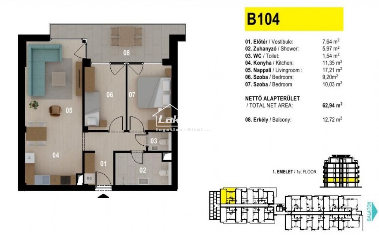 A Lakáskulcs-direct Ingatlan és Hiteliroda kínálatából megvásárolható: Fonyód kedvelt részén, kellemes környezetben, a Balaton parttól kb. 100 méterre épülő, kiváló minőségű társasház első emeletén 1 szobás 32,02 nm-es ( erkély: 1 nm) lakás eladó 2027 év eleji tervezett átadással. - a lakáshoz felszíni beálló valamint garázs vásárolható. - a remek lokáció, a Balatoni környezet, a kiváló tájolás, a minőségi és modern lakások és az elsőrangú közlekedés egyszerre biztosítják a ház apartmanjainak értékállóságát. - a társasház lakásai nemcsak állandó otthonnak, nyaralónak, de kiadásra és befektetési célra is tökéletesen megfelelnek. További információ: Kovács-Borsányi Lívia +36 (20) 579 6779 Siófok Lakáskulcs-direct Ingatlaniroda 8600 Siófok, Beszédes József sétány 83. földszint 1.