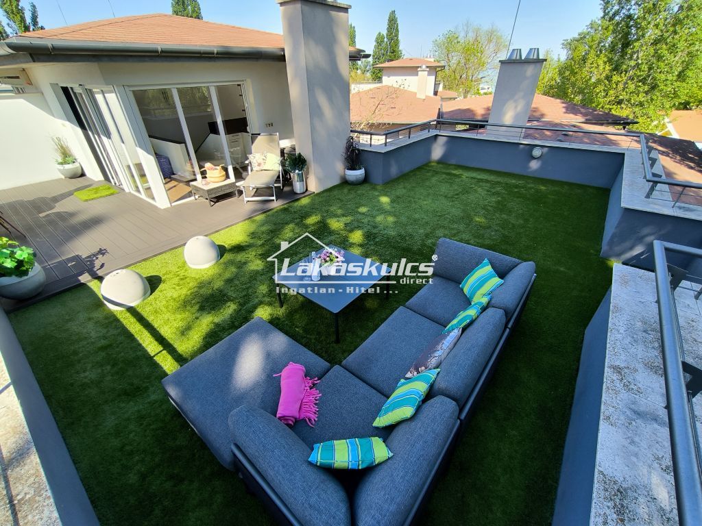 A Siófoki Lakáskulcs-direct Ingatlaniroda kínálatában: ÁLMAI OTTHONA VAGY NYARALÓJA VÁRJA!!! Siófok ezüstpartján a jacht- kikötőtől pár perc sétára, megújuló környezetben, közvetlen Balaton parti, gyönyörű ÖRÖK PANORÁMÁS LUXUS BERENDÉSŰ PENTHOUSE lakást kínálunk eladásra. Luxus szinten berendezett, vadonatúj, amerikai konyhás nappali + három külön bejáratú hálószobás, két fürdőszobás, külön wc-s, 46.2 nm -es teraszos, viágos nagy ablakokkal 112,6 nm -es hasznos alapterületen. A lakás igényesen berendezett, kivitelezett: vadonatúj konyhabútor beépített konyhagépekkel ( légkeveréses sütő, indukciós főzőlap, mikrohullámú sütő, páraelszívó, beépített mosogatógép, és hűtő ) áll az új tulajdonos rendelkezésére, látványos, dupla mosdós, kiváló minőségű , szabadon álló kádas és egy üveg kabinos fürdőszoba szolgálják a kényelmet. A fűtésről és a hűtésről a legmodernebb hőszivattyús LG rendszer gondoskodik egyedi szabályozással és méréssel, valamint padlófűtés is kialakításra került. A lakás külön mérőórákkal ( víz, villany ) rendelkezik. Prémium kategóriás belső berendezése új lakója számára tökéletes pihenést biztosítja, de befektetőknek is tökéletes választás. 8 fő számára kényelmes pihenést biztosít, magasabb prémium berendezése miatt kiemelkedően magas hozam biztosított. Az ingatlan két hálószobájából, amerikai konyhás nappalijából a balatoni panoráma vonzza a tekintetünket. A pihenést és az élvezetet tovább fokozhatjuk a teraszon, amit gondozásmentes Holland Pázsit fed. A lakás egy tiszta, jogilag is rendezett, liftes, kertes társasházban található a Balaton partján. A közös kert kertész által gondozott. Öntözőrendszer biztosítja a zöldellő pázsitot, a kicsik számára játszótér nyújt kikapcsolódást, a felnőtteknek szabadtéri edzőterem áll rendelkezésre a sportoláshoz. A ház udvarán belül található egy újonnan épített büfé, mely a jelen szezon indultával kerül megnyitásra. A társasház 2020 évben teljes szerkezeti felújításon esett át, újra vezetékezték és új lifteket szereltek fel. A penthouse lakás a 9. emeleten 2021 évben, újonnan épült a társasházra. Az épület hőszigetelési rendszerét a legújabb energetikai szabványoknak megfelelően 3 rétegű Rehau homlokzati nyílászárók és 20 cm -es tőzeg gyapot szigetelés biztosítja. Pár perc sétával elérhető a vitorlás kikötő, több kiváló étterem, bevásárlási lehetőségek, közvetlen szabad strand és sportpályák.A lakás tartozéka, így a vételár részét is képezi a konyhabútor a beépített minőségi gépekkel, a fürdőszobák berendezése, a beépített gardróbszekrény és szekrények, továbbá a kiváló minőségben kivitelezett, a lakásba méretezett függönyök, a minőségi és egyedi bútorok. A lakás valódi pompáját teljes berendezés mellett élvezhetjük, a berendezési tárgyak ( lámpák, vázák, textíliák) szintén a lakás tartozéka.Felszíni gépkocsi parkoló további alku tárgyát képezheti. Az ingatlan megvásárlása esetén, irodánk vállalja a többféle konstrukcióban történő nyári, egész éves hasznosítását, kiadását, hogy ez a befektetés minél előbb megtérüljön a leendő vásárlóinknak. Mindezt megbízható irodai és szakmai háttérrel, valamint a kiadásban és lakberendezésben jártas kollégákkal és hozzáértéssel tesszük. Megtekintéssel és további kérdésekkel kapcsolatban keressen bizalommal: Kovács Zsolt +36 (20) 218 4274